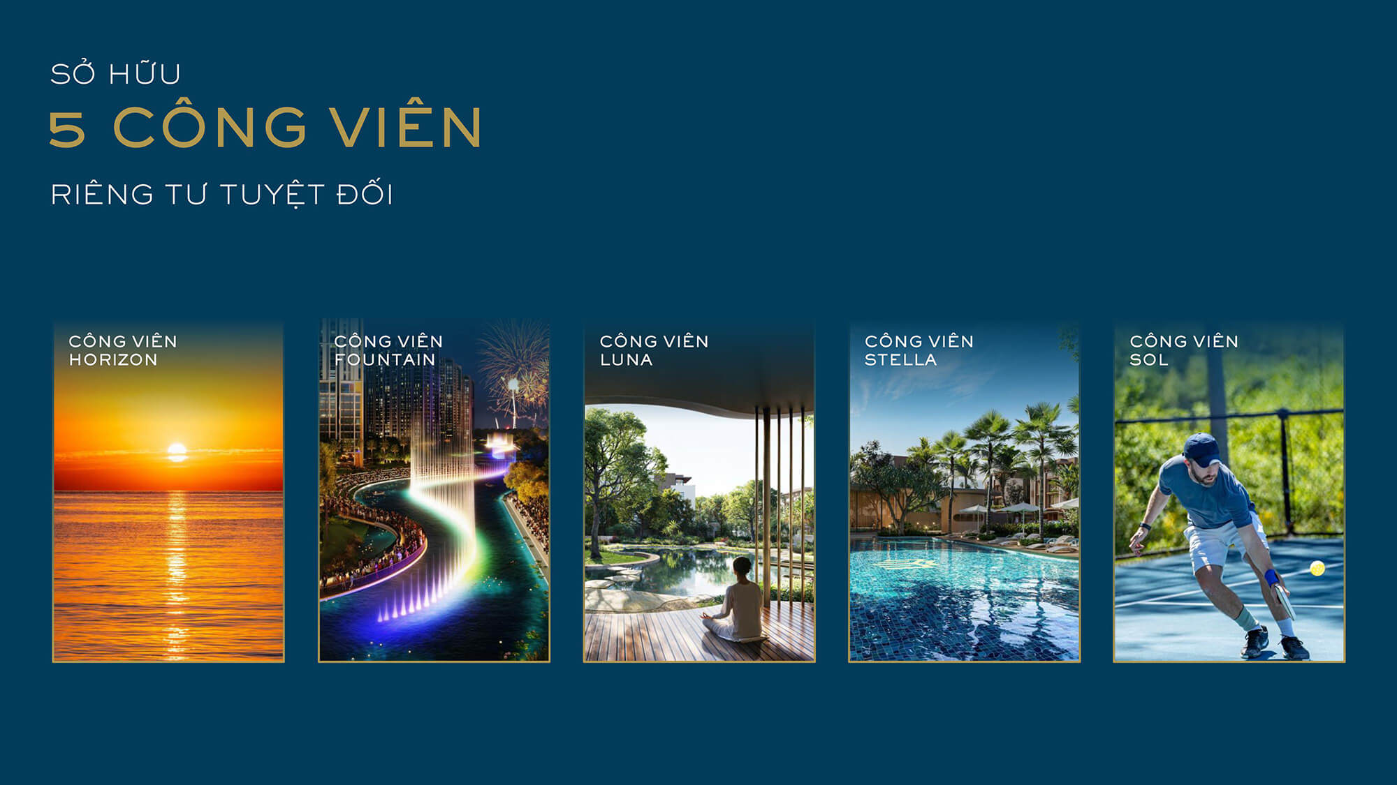 Tiện Ích Nổi Bật Compound biệt lập, 5 công viên nội khu (hơn 5.500m²), công viên bờ sông, liền kề kênh đào nhạc nước Canal of Love, thừa hưởng tiện ích toàn khu đô thị The Global City.