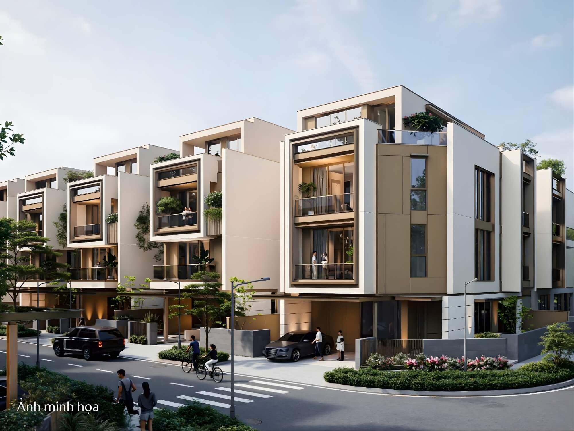• Hệ thống 5 Công viên Compound: Tổng diện tích cây xanh lớn (khoảng 25.000m²), với các cụm công viên nội khu xen kẽ giữa các dãy biệt thự.